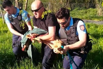 Французские жандармы спасли дикого олененка, «изолировавшегося» на городском участке