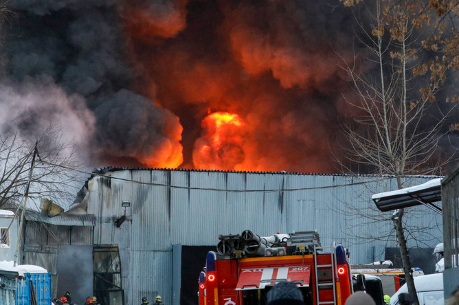 Крупный пожар в ангаре на юге Москвы потушили