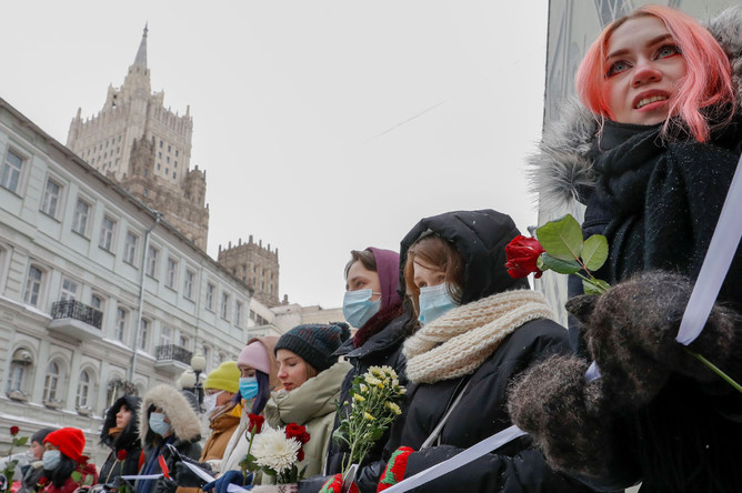Активистки выстроились в «цепь солидарности» на Старом Арбате