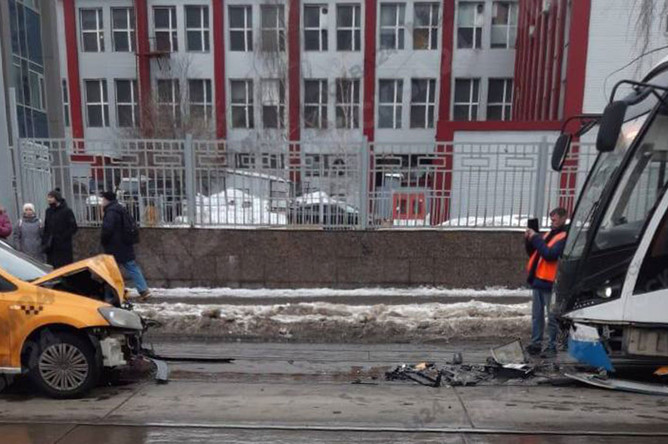 В центре Москвы такси врезалось в трамвай