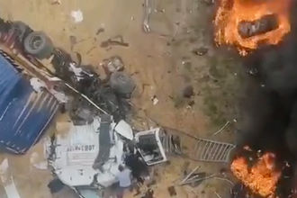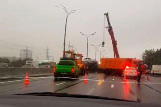 Грузовик рухнул с эстакады ЦКАД и загорелся