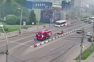В Красноярске автобус загорелся на ходу и подъехал к пожарной машине
