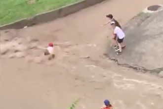 Появилось видео с ребенком, унесенным потоком дождевой воды в Красноярске