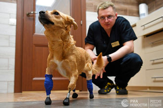 В Новосибирске ветеринары впервые в мире установили собаке протезы на все лапы