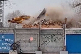 В Екатеринбурге при сносе аэровокзала опрокинулся экскаватор