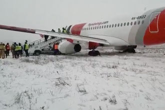 Опубликовано видео выезда самолета за пределы взлетно-посадочной полосы в Белгороде