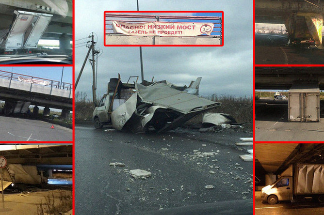 В Петербурге под низким мостом с надписью «Газель не проедет» не проехала 144-я «Газель»