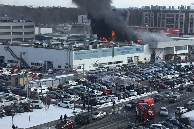 Пожар в автосалоне в Петербурге мог начаться во время противопожарных учений