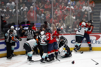 Хоккеисты «Вашингтона» и «Сиэтла» устроили драку, из-за которой удалили 10 игроков