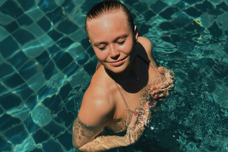 Российская гимнастка показала себя в бассейне, прикрыв грудь руками