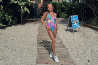 Российская гимнастка вышла на публику в разноцветном купальнике