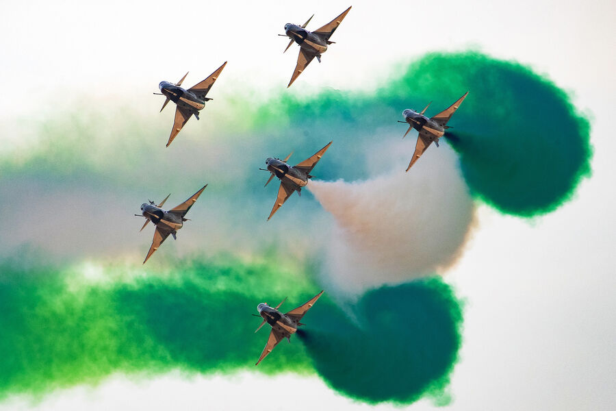 Из России в Саудовскую Аравию приехали представители более 20 организаций. Самым крупным экспонатом стал военно-транспортный самолет Ил-76МД-90А(Э) в экспортном исполнении. ОАК также показала истребитель Су-75.