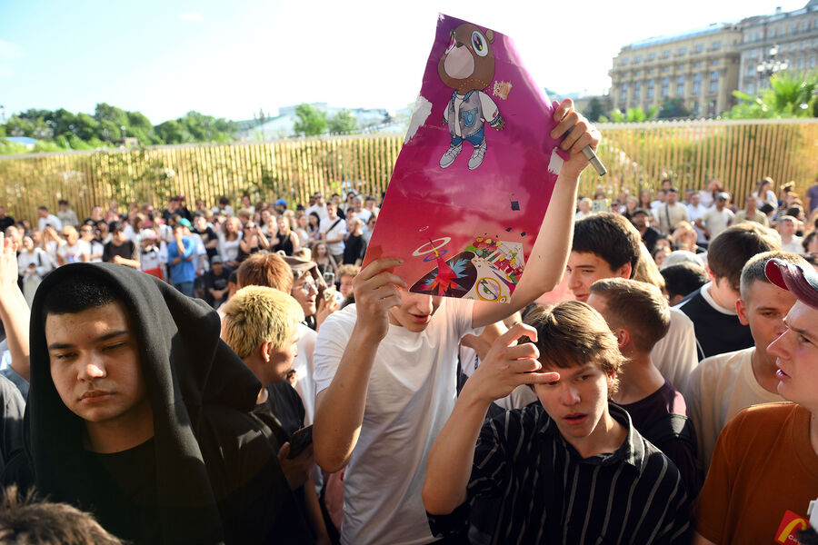 Тем временем у отеля Four Seasons, в котором остановился Канье Уэст, собралось много людей, которые неоднократно скандировали: «Канье! Канье!». У отеля усилили охрану. ОМОН и сотрудники полиции пытаются сдержать наплыв людей и оттеснить их с территории.