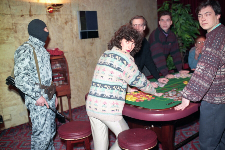 «Казино открывали в зданиях бывших ДК и кинотеатрах. Игорные автоматы устанавливали в павильонах спальных районов так плотно, что они были в каждом квартале. Как правило, их ставили впритык к пивным ларькам, чтобы работяги могли в свой выходной выпить и проиграть часть получки. На автозаправках и в магазинах продуктов почти всегда был уголок, где располагались «столбики» — самые простые азартные игровые автоматы», — пишет Life.