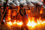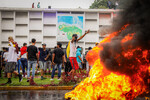 Силовики, заблокировавшие улицы вокруг президентского дворца, открыли огонь по протестующим пластиковыми пулями и применили слезоточивый газ. В ответ демонстранты начали забрасывать их камнями и бутылками с горючей смесью.