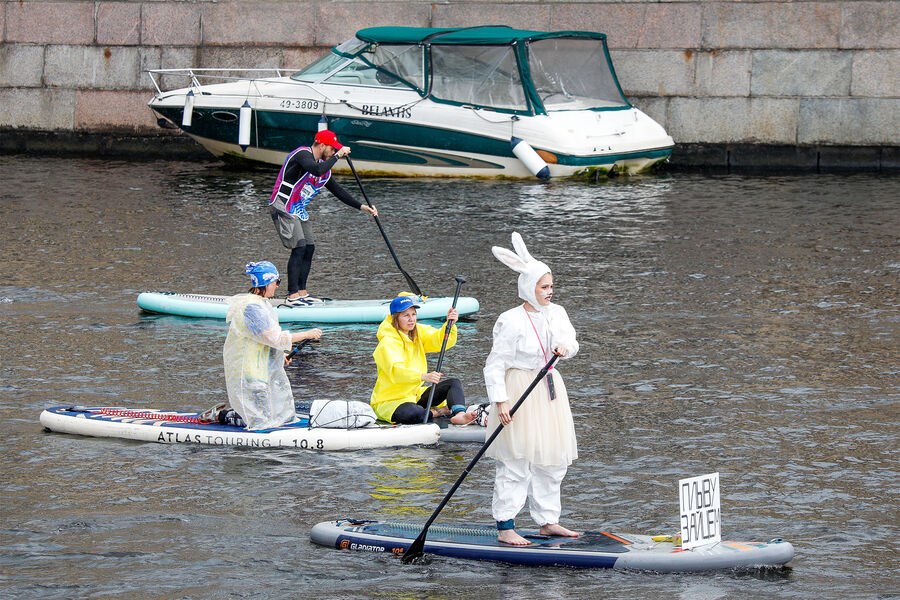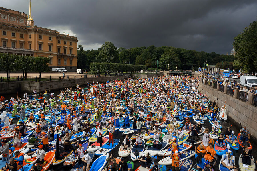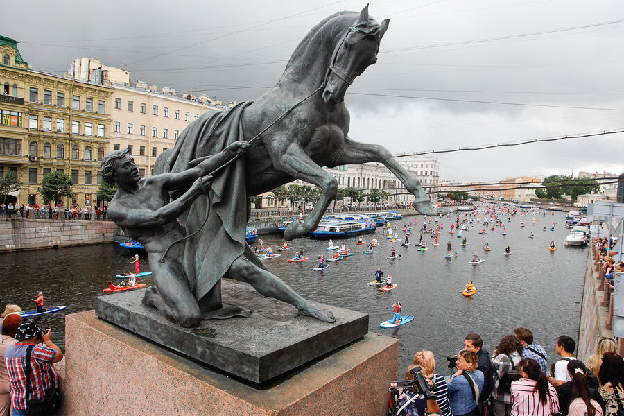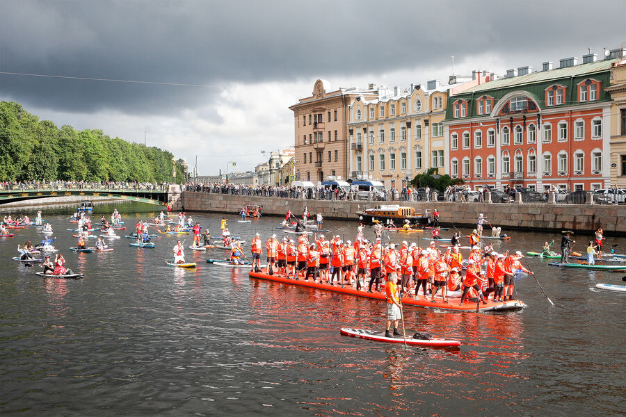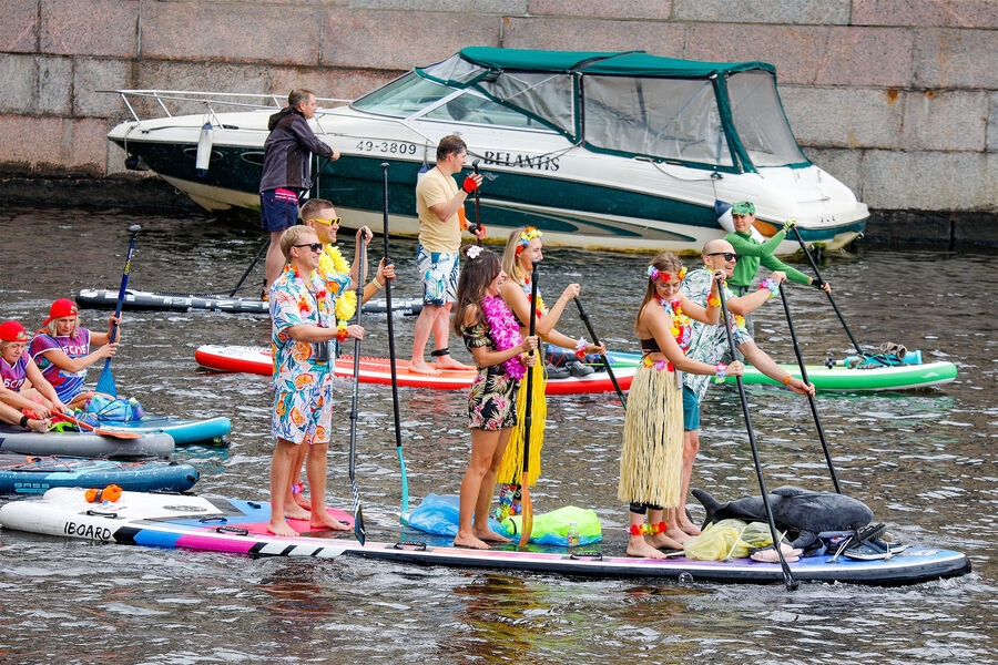 В Санкт-Петербурге 3 августа прошел крупнейший в Восточной Европе фестиваль SUP-серфинга «Фонтанка SUP». Он проводится в девятый раз. Участники наряжают себя, свой сапборд и плывут по Мойке, Фонтанке и Крюкову каналу в общей сложности восемь километров, проходя под 28 мостами.