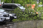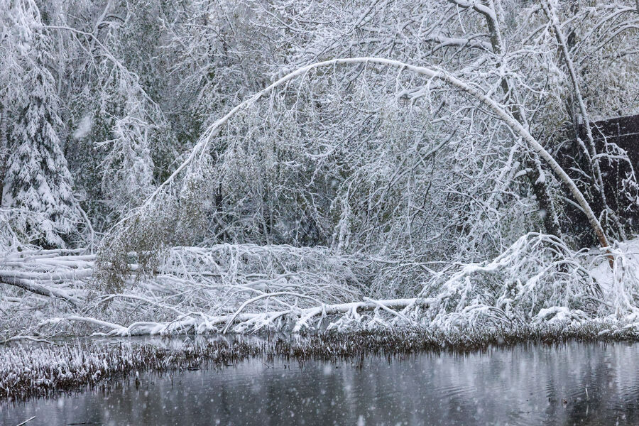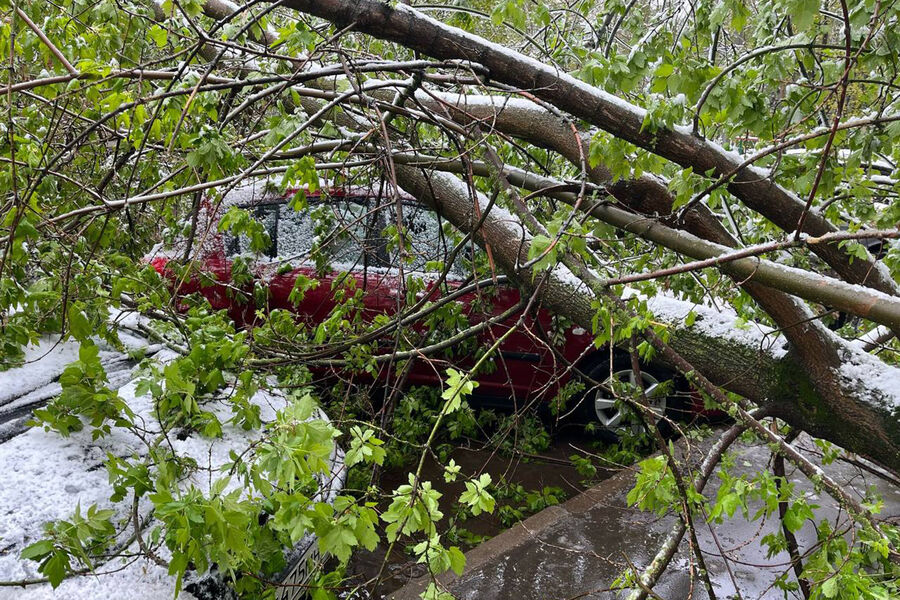 Под тяжестью осадков деревья падали на припаркованные автомобили и железнодорожные пути, что привело к задержкам электричек на Ярославском направлении. В Зеленограде ветки разбили окна перинатального центра.