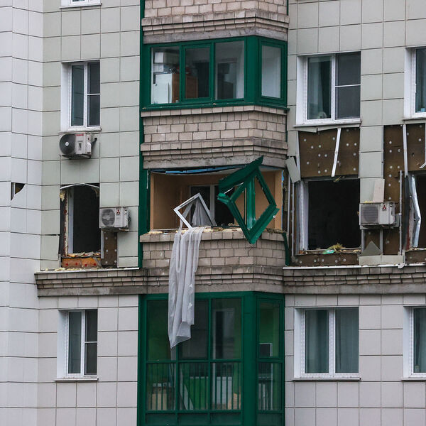 Жильцы атакованного дома рассказали, что в подъезде «разворотило лифт». Более 70 человек эвакуировались самостоятельно. Двор усеян обломками дрона и стеклами. Территорию вокруг дома оцепили.
