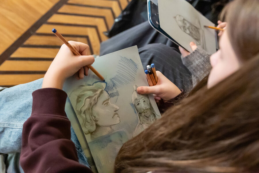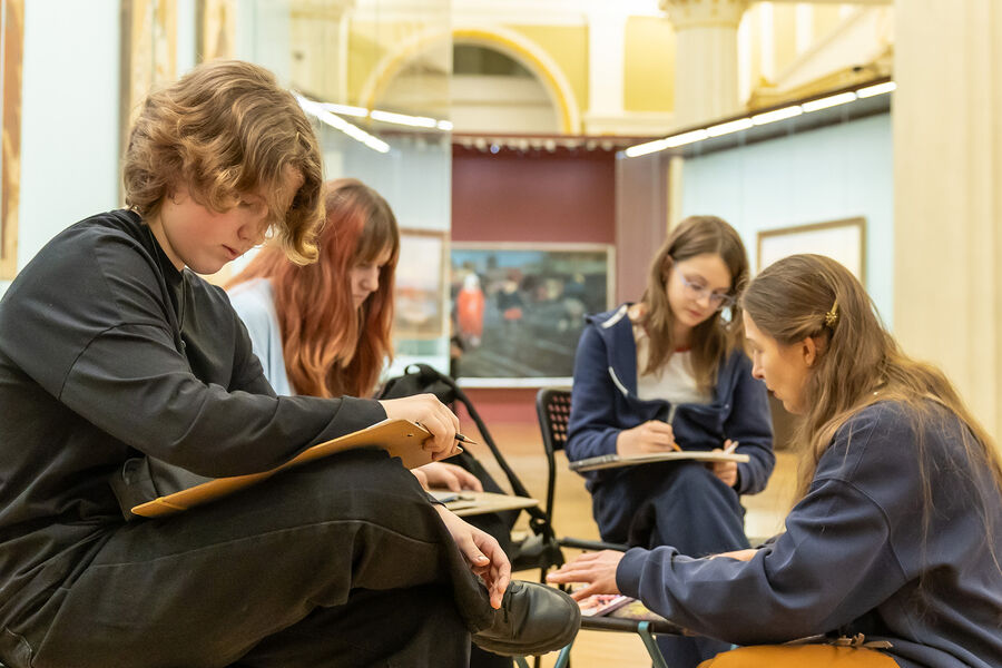 Учащиеся детских школ искусств столичного департамента культуры приняли участие в творческой сессии на выставке «Образ Москвы в русском искусстве из коллекции Государственного Русского музея» на ВДНХ. В ее рамках они создали этюды по мотивам представленных произведений.