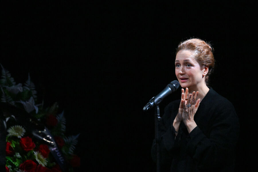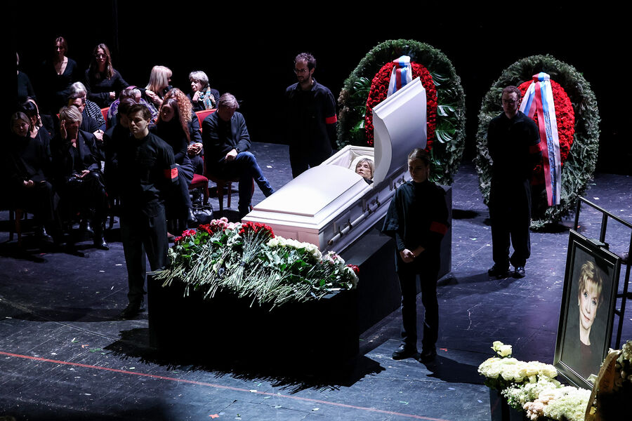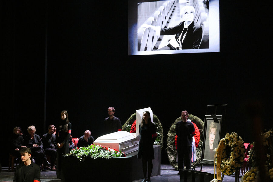 В Театре имени Пушкина прошло прощание с народной артисткой России Верой Алентовой. Проводить актрису в последний пуст пришла ее семья — дочь Юлия Меньшова, зять Игорь Гордин и внуки Таисия и Андрей. А также многочисленные друзья, коллеги и ученики: Константин Хабенский, Александр Олешко, Виктория Исакова, Мария Аронова, Евгений Миронов, Александр Панкратов-Черный, Карен Шахназаров, Игорь Угольников и другие.