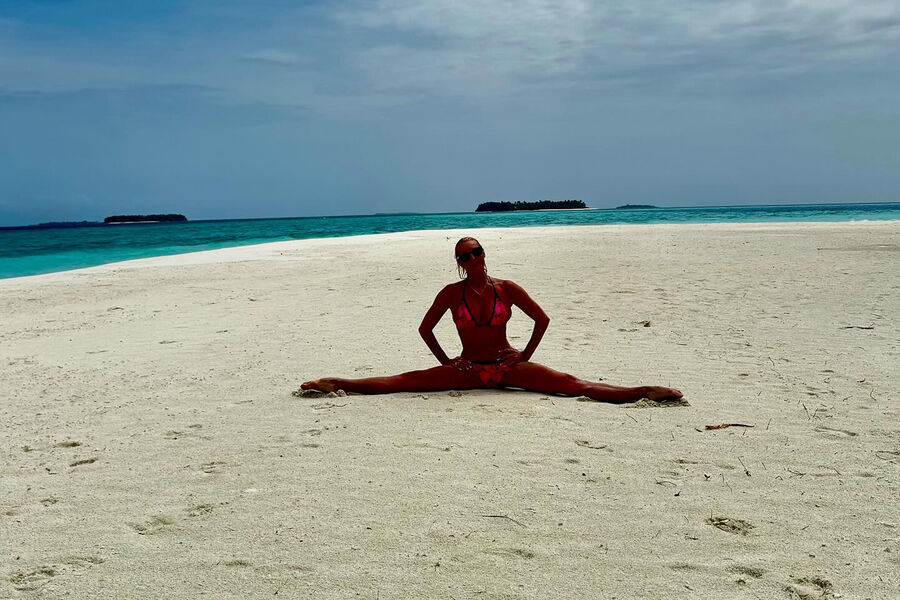 Волочкова известна активным ведением социальных сетей, в которых она часто публикует личные фотографии, на которых делает шпагат в разных точках планеты.