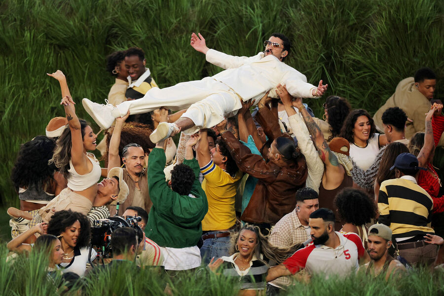 Главным событием вне поля традиционно стало шоу в перерыве. Хедлайнером музыкальной программы выступил пуэрториканец Bad Bunny — лауреат «Грэмми» и первый артист в истории Супербоула, чье выступление полностью прошло на испанском языке. Вместе с ним на сцене появились Рики Мартин с хитом Livin' La Vida Loca, Леди Гага, исполнившая Die With A Smile, а также певицы Carol G, Cardi B, Джессика Альба и многие другие.