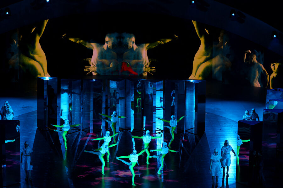 Церемония началась с небольшого фильма. Затем зрители увидели театрализованное представление, световое шоу с олимпийским девизом «Быстрее, выше, сильнее — вместе», различные музыкальные, танцевальные и акробатические номера, а также парад спортсменов-участников. Российские атлеты, которые выступали на Играх в нейтральном статусе, также получили приглашения на церемонию и прошли в колонне вместе со всеми. Всего, по заявлениям организаторов, в параде приняли участие около 1,5 тыс. спортсменов.