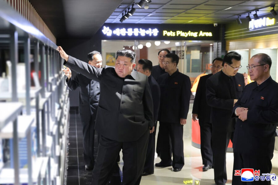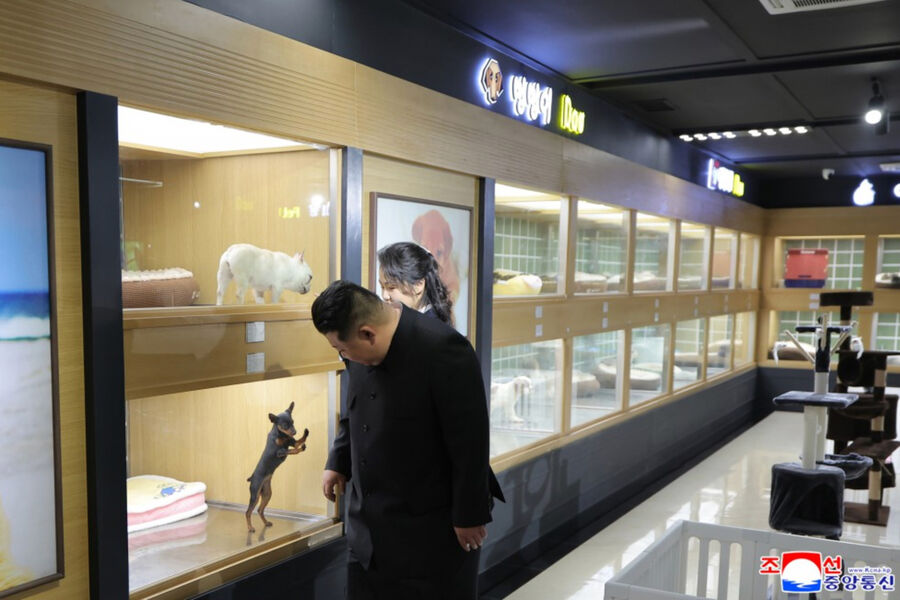 Ким Чен Ын запечатлен держащим белоснежного щенка местной охотничьей породы пхунсан, а Ким Чжу Э — котенка породы золотая шиншилла. Они постояли у вольера с котятами, а дочь северокорейского лидера поиграла с маленькими хищниками у домика с когтеточкой. Глава КНДР сообщил, что жители столицы все чаще заводят питомцев, в связи с чем он поручил нарастить производство товаров для животных.