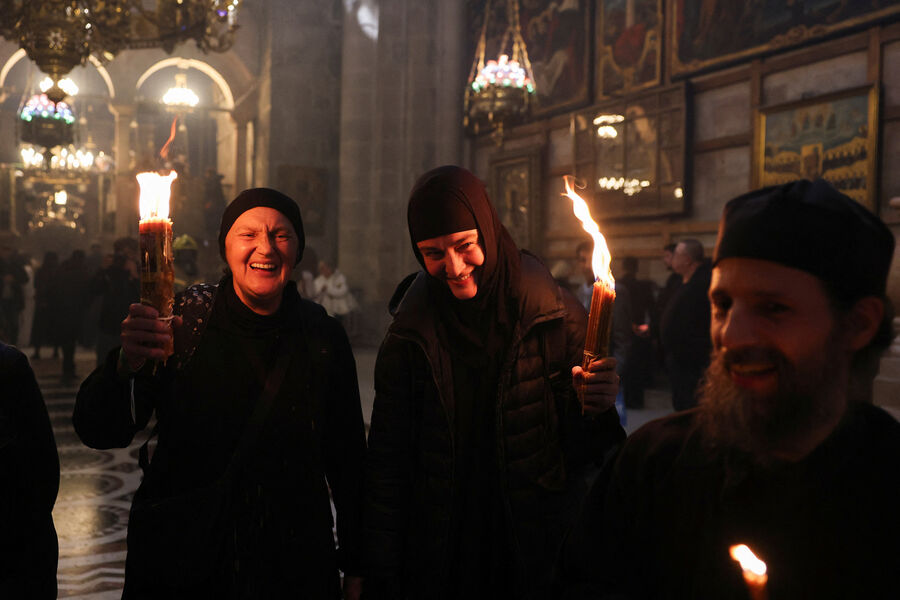 С 2003 года Благодатный огонь в Россию доставляет Фонд Андрея Первозванного. В 2026 году делегацию возглавили председатель попечительского совета фонда Владимир Якунин и викарий патриарха Московского и всея Руси Кирилла митрополит Каширский Феогност, в ее составе также ректор Московской консерватории Александр Соколов, адвокат Павел Астахов и другие.