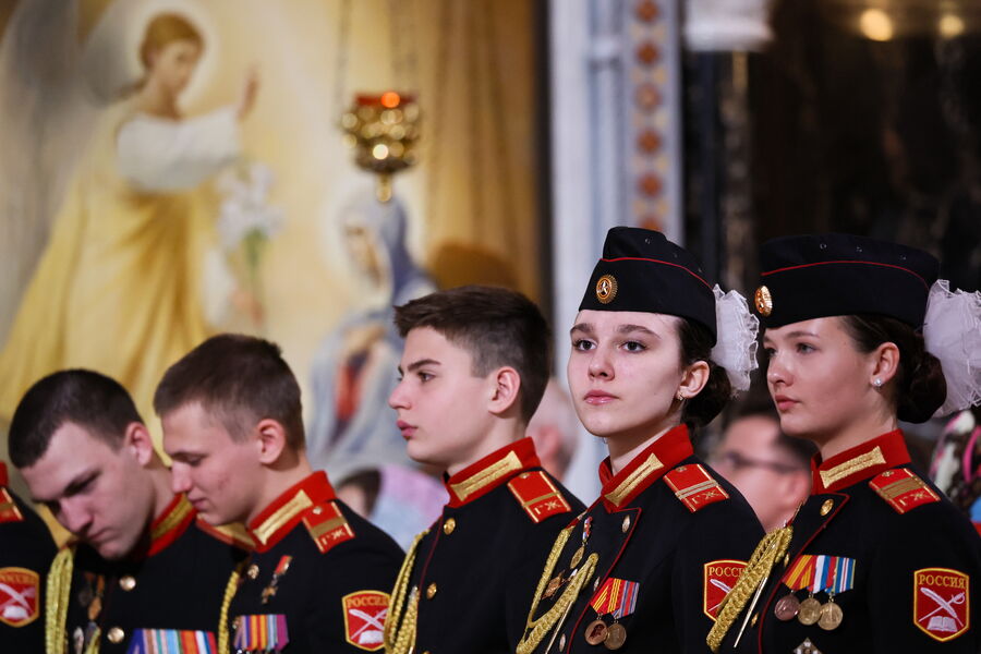 Богослужение в главном храме России собрало большое количество верующих, среди них присутствовали курсанты Московского суворовского военного училища. Также среди гостей заметили отца Илона Маска, Эррола Маска.