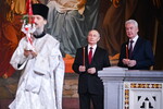 «Моя благодарность за возвращение святынь, которые мы здесь видим, в первую очередь, Владимиру Владимировичу Путину», — сказал патриарх после богослужения в храме Христа Спасителя.