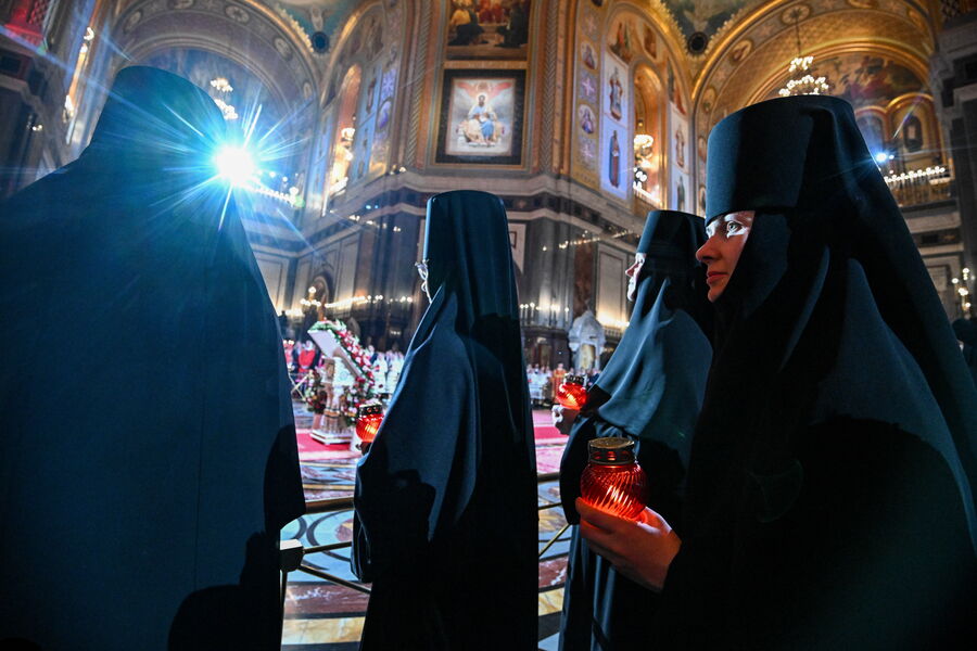 В ночь на воскресенье, 12 апреля, православные россияне встретили Пасху. Торжественные службы прошли в храмах и церквях страны. В храме Христа Спасителя богослужение провел патриарх Московский и всея Руси Кирилл. Церемонию посетил президент России Владимир Путин и мэр Москвы Сергей Собянин.