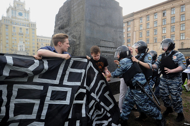 Митингующие прорвались к памятнику Маяковскому