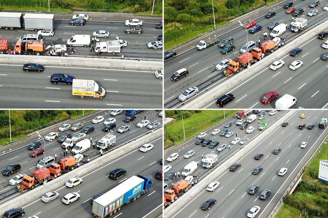 Кадры с места смертельной аварии на МКАД