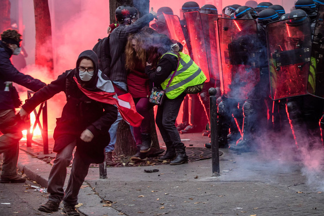 Лазерные указки и фейерверки: как протестующие громили Париж