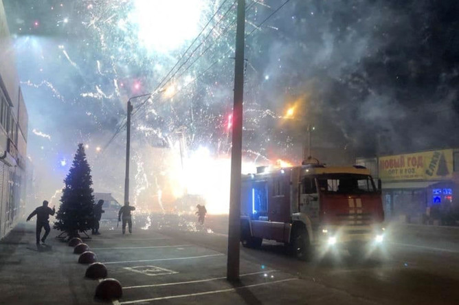 Кадры пожара в павильоне с пиротехникой в Ростове-на-Дону