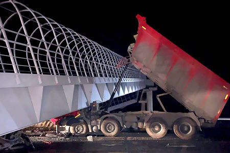 Кадры с места обрушения пешеходного моста на автомобили в Пермском крае