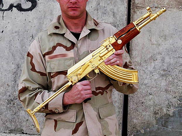 Автомат Калашникова в золоте Михаил Тимофеевич Калашников – выдающийся конструктор, разработавший легендарный автомат Комплектация автомата может быть достаточно разнообразной. SturmGewehr 44 (StG 44) немецкий автомат, разработанный в годы Второй мировой войны конструктором Уго Шмайссером. До сих пор идут ожесточенные споры, насколько АК-47 похож на StG 44 поскольку у автоматов есть общие конструктивные решения. Американский карабин M1 Garand. С использованием его Калашников в 1946 году разработал автомат (условное название АК-46), который был отвергнут государственной комиссией, он имел значительное сходство с M1 Garand. После АК-46 Калашников и разработал свой знаменитый автомат. АКМС: автомат Калашникова модернизированный, со складным прикладом. Разработан специально для десантников. АК-74 Урок по изучению Калашникова в Московском Георгиевском кадетском корпусе. АК-200 В кадетской школе-интернате События в Венгрии в 1956 году. Участники антисоветского восстания с автоматами Калашникова. Калашников использовался во время войны во Вьетнаме. Калашников - главное оружие во время продолжительного конфликта в Афганистане. Один из самых известных афганских полевых командиров Ахмад Шах Масуд. В Африке из Калашникова учат стрелять с детства. Недавно сомалийская радиостанция, учрежденная исламистской группировкой «Аль-Шабаб», наградила детей, победивших в конкурсе по чтению Корана и по общим знаниям ислама, автоматами АК-47. Террорист №1 Усама бен Ладен тоже предпочитал Калашников. Иракская армия. Главные ценности в Эфиопии. Флаг Мозамбика. Калашников в качестве узора для ковра. Автомат для читательниц женских журналов. No comments.