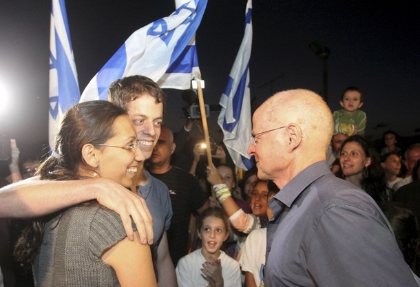 Освобожденный Гилад Шалит, переданный боевиками ХАМАС Египту, перед тем, как возвратиться на родину, дал короткое интервью египетскому телевидению, в котором призвал израильтян и палестинцев к примирению. Конвой машин с освобожденными палестинскими заключенными перешел административную границу Израиля и Палестинских территорий на рассвете сразу, как только из Египта поступило сообщение об освобождении Шалита. В обмен на его свободу Тель-Авив выпустил из заключения 1027 человек. Боевики ХАМАС ждут, когда через КПП «Рафах» в Сектор Газа пройдут автобусы с освобожденными палестинскими заключенными. Во вторник свободу получат 477 заключенных. Через два месяца Израиль обязуется отпустить еще 550 человек. Для 40 человек Тель-Авив поставил условием освобождения их депортацию за пределы Палестинских территорий – они будут доставлены в Катар, Сирию или Турцию. Еще 163 уроженца Западного берега реки Иордан будут отправлены в Газу. Автоколонна с палестинскими заключенными проходит через ворота тюрьмы «Офер» в Рамалле на Западном берегу реки Иордан. Из 1027 освобождаемых 287 отбывали пожизненный срок за теракты – преступления против Израиля и его граждан, 27 освобожденных – женщины. Палестинцы ждут возвращения освобожденных у КПП «Бейтуния» на Западном берегу реки Иордан. Ибрагим Иссауи, муж заключенной Ибтисам Иссауи, ждет возвращения жены у себя дома в арабском районе Иерусалима Джабаль-Мукабер. Родственники палестинских заключенных собрались перед КПП «Рафах» в Секторе Газа, ожидая прибытия освобожденных. Патруль ХАМАС на КПП «Рафах», через который проследовала автоколонна с помилованными палестинскими осужденными. Автоколонна с первыми 96 помилованными палестинцами покидает израильскую тюрьму «Кциот». Родственники Гилада Шалита, его брат Юэль с возлюбленной Яарой Винклер и отцом Ноамом, перед своим домом в Мцпе-Хиле на севере Израиля. Израильские пацифисты на митинге в поддержку сделки об обмене заключенными с плакатами «Мир побеждает террор». В понедельник Верховный суд Израиля отклонил иск, требовавший запретить президенту Израиля Шимону Пересу миловать палестинских заключенных, предназначенных для обмена. Противники сделки по обмену Гилада Шалита на 1027 палестинского заключенного держат в руках белые флаги, символизирующие капитуляцию, протестуя перед резиденцией премьер-министра Биньямина Нетаньяху в Иерусалиме. Репортеры ждут прибытия Шалита на военную авиабазу «Тель-Ноф», где его встречали родные и премьер-министр Биньямин Нетаньяху. Мать Гилада Шалита Авива (4-я справа) и его отец Ноам (2-й справа) в сопровождении военных идут по аэродрому «Тефен» к вертолету, который доставит их на авиабазу «Тель-Ноф», где они встретят своего сына. В течение более пяти лет в Израиле проводили митинги участники кампании с требованием от правительства приложить все усилия для освобождения Гилада Шалита, ставшего «всеобщим сыном». На фотографии – муниципальный зал в родном городе Шалита Мцпе-Хила. Его родители (на фотографии его отец Ноам) установили палатку протеста перед зданием канцелярии премьер-министра в Иерусалиме. Они разобрали ее 12 октября, когда стало известно о заключении сделки израильского правительства с ХАМАС сыном. 17 Представители палестинского движения ХАМАС сначала передали Шалита, проведшего в плену более 