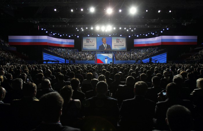 Съезд «Единой России» разрешил ключевую интригу российской политики. Оба участника тандема появились в зале после того, как с ободряющими короткими речами перед делегатами выступили борец Александр Карелин, актер Владимир Машков, депутат Екатерина Лахова и шахтер Александр Каминский. Президент анонсировал после 2012 года «кардинально обновленное правительство России, которое будет формировать партия-победитель». «Единая Россия» победит и, опираясь на общенародную поддержку, Дмитрий Анатольевич Медведев сможет создать новую эффективно функционирующую управленческую команду, возглавит правительство Российской Федерации для того, чтобы продолжить работу по модернизации всех сторон нашей жизни», – сообщил премьер.