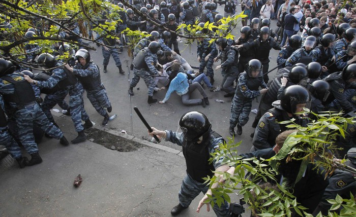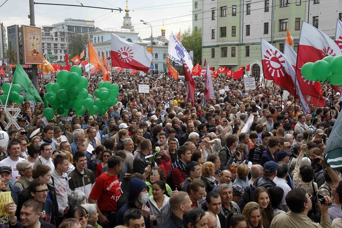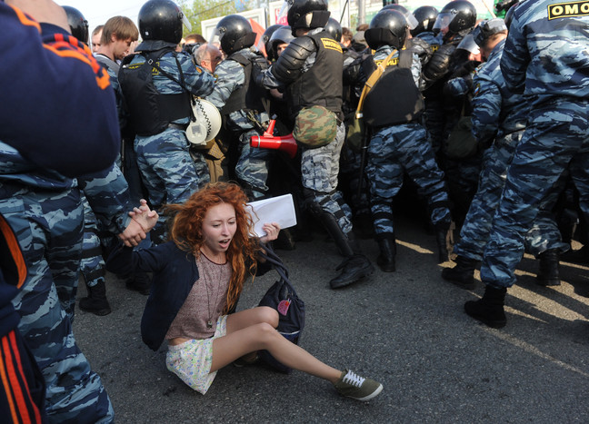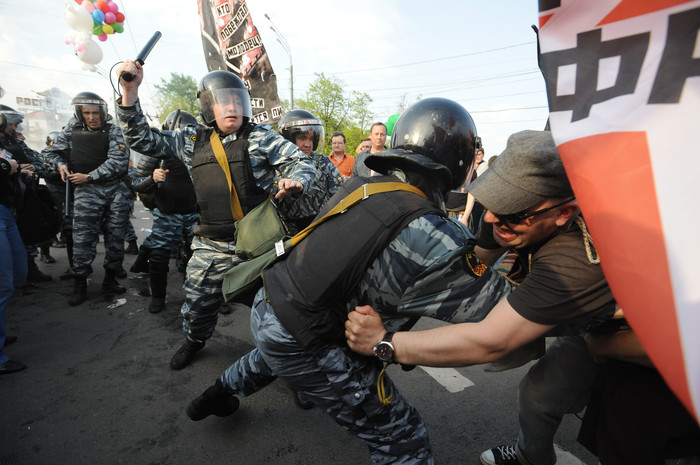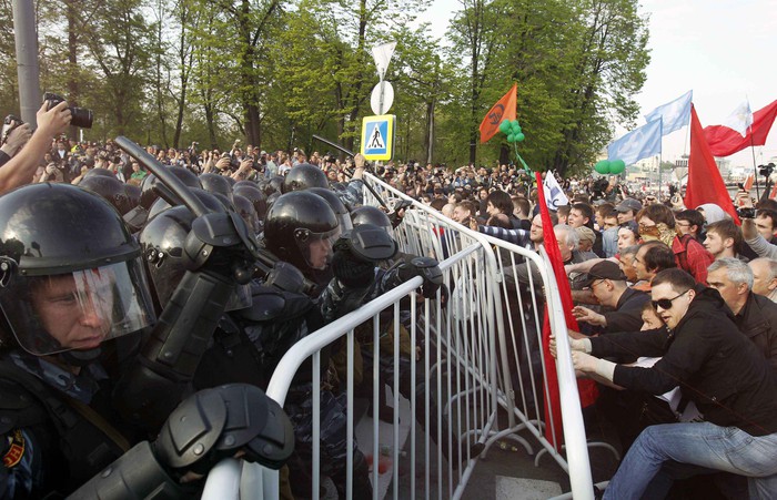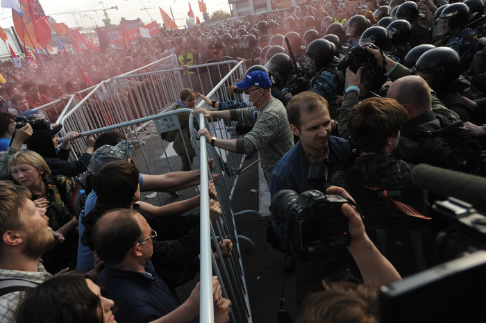 Московская акция оппозиции «Марш миллионов» закончилась столкновениями демонстрантов с полицией. После шествия колонны протестующих по Якиманке к месту проведения митинга на Болотной площади, Алексей Навальный (включен в список террористов и экстремистов), Сергей Удальцов и часть демонстрантов объявили сидячую забастовку у кинотеатра «Ударник». После этого со сцены было объявлено об отмене митинга. Часть протестующих отказалась расходиться. Началась давка и столкновения с полицией, ОМОН произвел массовые задержания.