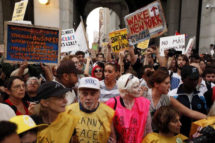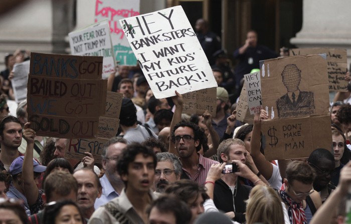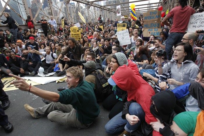 Полиция Нью-Йорка задержала в выходные более 700 участников манифестации на Уолл-стрит. Протестующие перекрыли Бруклинский мост, нарушив движение на несколько часов. Марш прошел в знак протеста против действий влиятельных финансовых институтов США, которые, по их мнению, привели страну к экономическому кризису.