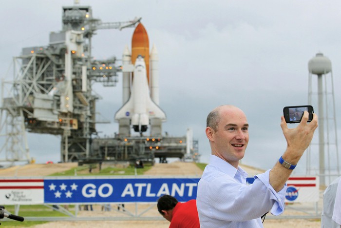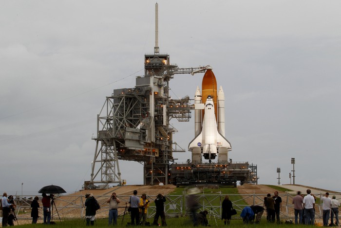 Старт шаттла будут освещать множество журналистов.