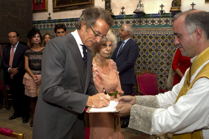 Испанская герцогиня Альба вышла замуж за чиновника, который младше ее на 24 года. 85-летняя невеста — одна из самых богатейших женщин в Европе — не поддалась давлению родственников, которые ее осуждали.