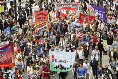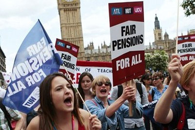 В различных городах Великобритании начались забастовки госслужащих, работников здравоохранения и преподавателей против реформирования пенсионной системы. Общенациональная забастовка организована четырьмя британскими профсоюзами, трое из них - профсоюзы учителей, четвертый представляет интересы авиадиспетчеров, работников береговой охраны, тюремных охранников, сотрудников иммиграционной службы и центров трудоустройства. Общее число работников бюджетной сферы, принявших участие в забастовке, составляет около 750 тысяч человек.