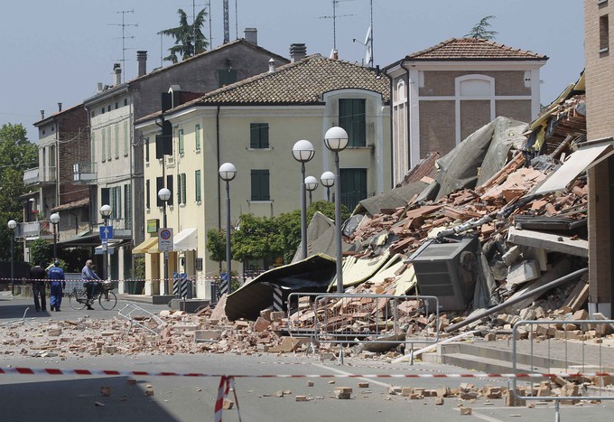Очередное сильное землетрясение магнитудой 5.8 потрясло Италию во вторник около 9.00 (11.00 мск) Эпицентр находился на глубине в 10 километров в провинции Модена, в регионе Эмилия-Романья, родине сыра пармезан, пармской ветчины, автомобилей Ferrari и певца Лучано Паваротти Колебания почвы ощущались по всему северу страны, сообщает Reuters В трещинах в земле, оставшихся после мощного землетрясения 20 мая, появился влажный песок «Кровать ходила ходуном, лампа шаталась, стол с посудой тоже двигался, минуты две это продолжалось, – сообщила «Газете.Ru» россиянка Алевтина, живущая в Милане. – Не знаю, сильное ли было землетрясение, но это однозначно страшно!» В соседней провинции Тоскана жители почувствовали слабые толчки. «У нас, слава Богу, не сильно трясло. Второй раз за десять дней – это уже страшо. И говорят, что все это будет продолжаться дальше», – рассказала россиянка Виктория Восковская, живущая в городе Сиена Некоторые жители страны недовольны тем, что в прессе преувеличивают разрушения, считая, что это политические разборки на высшем уровне – власти пострадавших регионов хотят получить больше денег в свою бюджеты «Никакого беспокойства нет, а все новости – это политика, чтобы деньги региону получить», – говорят жители города Болоньи, рядом с которым произошло землетрясение Бизнесмены, связанные с туризмом в свою очередь, переживают, что землетрясение сказалось на потоке туристов. Они начали отказываться от поездок, но на деле всего лишь дожидаются скидок, считают предприниматели