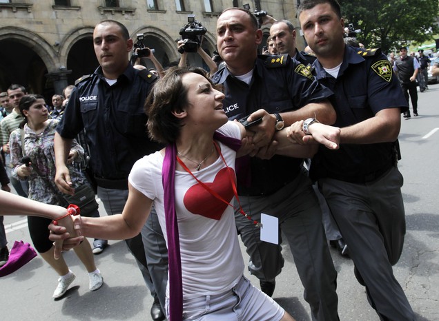 Первый в истории гей-парад в Тбилиси. Первый в истории гей-парад в Тбилиси. Первый в истории гей-парад в Тбилиси. Протестующие набросились на демонстрантов, разрывая их плакаты. «Как можно поощрять такие вещи на улице, где есть дети?», — возмущался один из священников, которые преградили путь параду, пишет «Би-би-си». Некоторые из них подошли к полиции с просьбой «остановить эту непристойность». Когда началась драка, полиция вмешалась и арестовала троих — одного демонстранта и двух протестующих. Представители «Идентичности» заявили, что ожидали «негативную реакцию», но не нападения. Председатель комитета по евроинтеграции Давид Дарчиашвили заявил, что как бы ни был неприемлем «гей-парад», он является одной из форм самовыражения. «Мы или должны быть свободной страной, или нет. Нельзя говорить, что мы хотим демократию, и желать ее только для себя», — сказал он.
