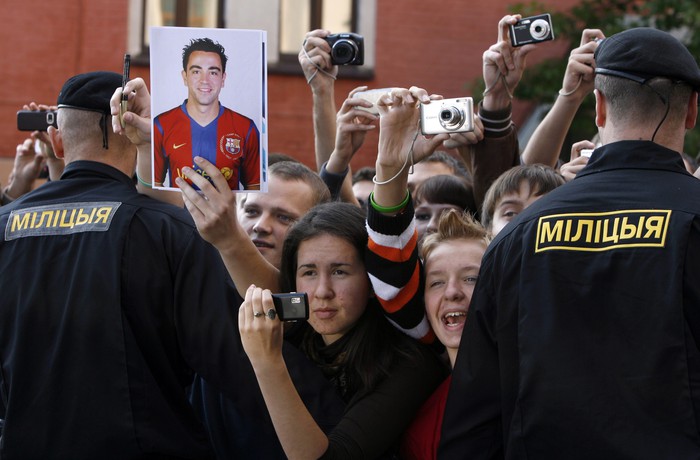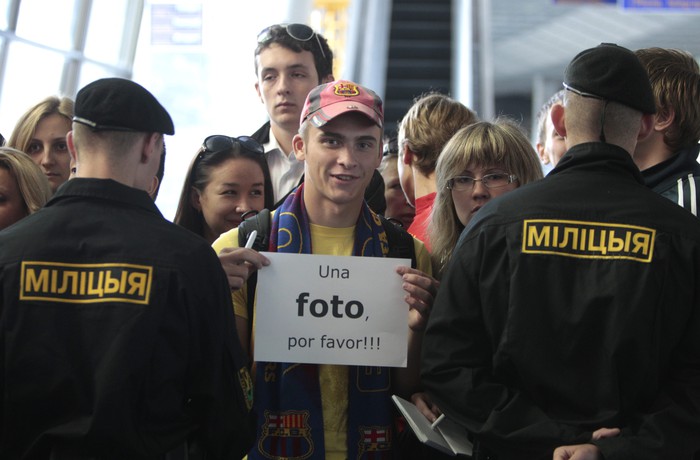 Сотни любителей футбола в Минске приехали на встречу футболистов «Барселоны», которым в среду предстоит матч Лиги чемпионов против БАТЭ.