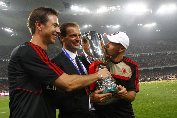 «Милан» выиграл Суперкубок Италии. В Пекине на Олимпийском стадионе подопечные Массимилиано Аллегри, ставшие в прошлом сезоне чемпионами страны, выиграли у обладателя Кубка Италии «Интера», уступая в счете в первом тайме.