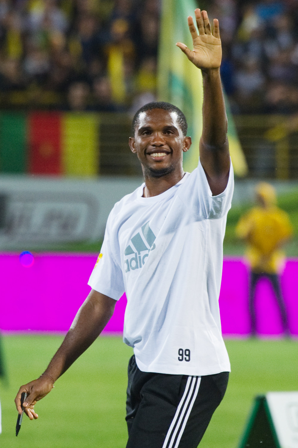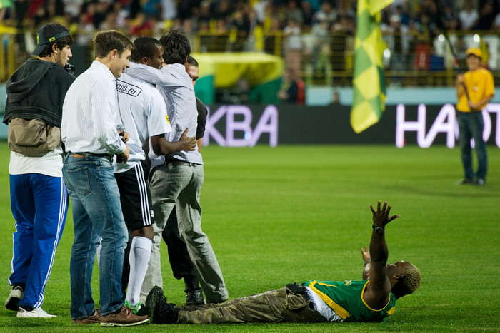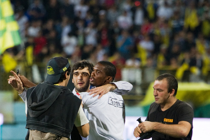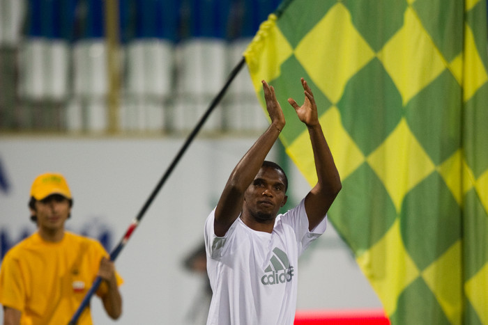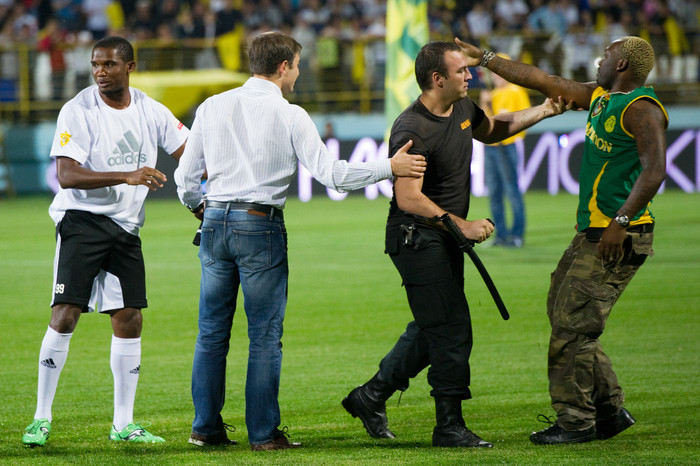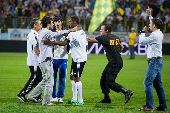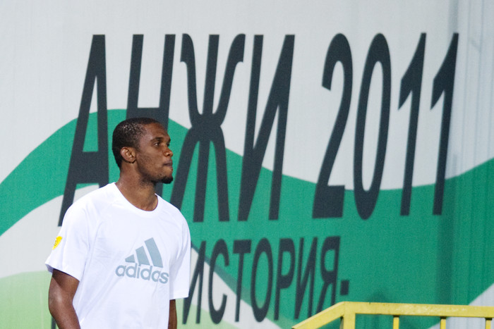 Состоявшаяся в Махачкале презентация именитого новобранца «Анжи» Самуэля Это'о длилась недолго. После вступительной речи нападающий выбил четыре мяча на трибуны. Болельщики приветствовали игрока громкими криками и пытались прорваться сквозь кордон, чтобы обнять Это'о или упасть к нему в ноги. Это удалось сделать одному темнокожему фанату.
